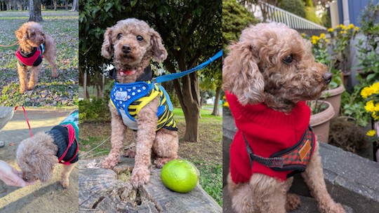 お散歩が大好きで、草地や枯れ葉が積もった場所、土や小石の道など、いつも楽しそうに歩いています。